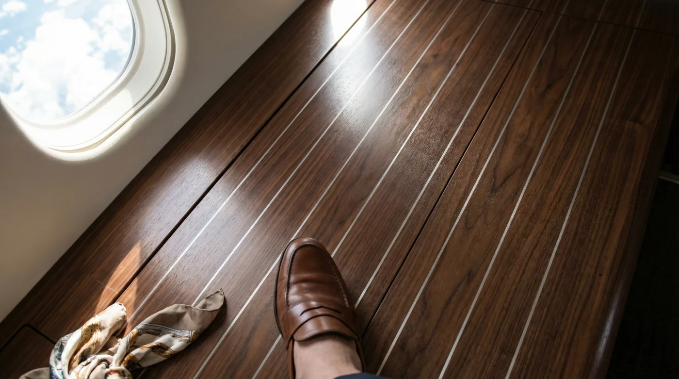 It is genuine timber, albeit highly engineered. It uses a specialized veneer technique bonded to a lightweight honeycomb composite structure to ensure it meets aviation weight and safety standards without sacrificing the tactile feel of real wood.
