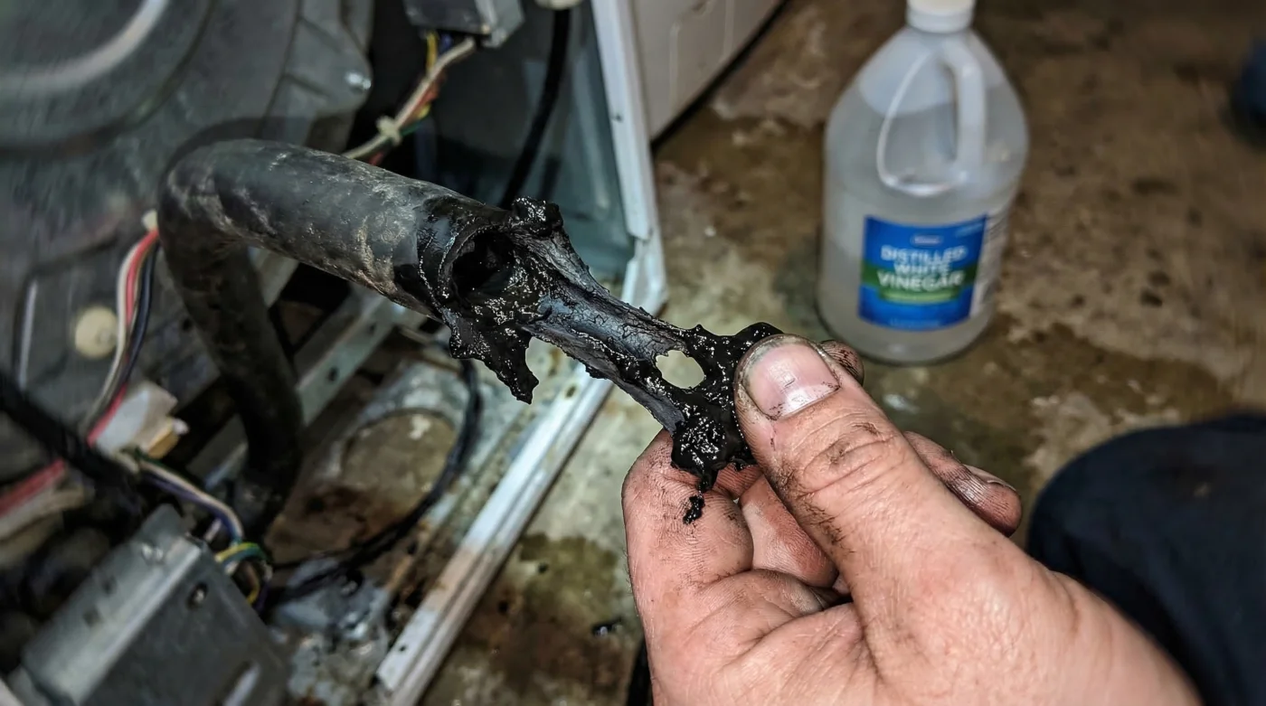 - Symptom: The main grey rubber door seal feels unusually sticky to the touch, visibly sags, or leaves a stubborn black residue on your fingers when wiped. = Cause: Advanced stage chemical melting; the repeated doses of acetic acid have completely broken down the fundamental polymer bonds of the outer rubber rim.