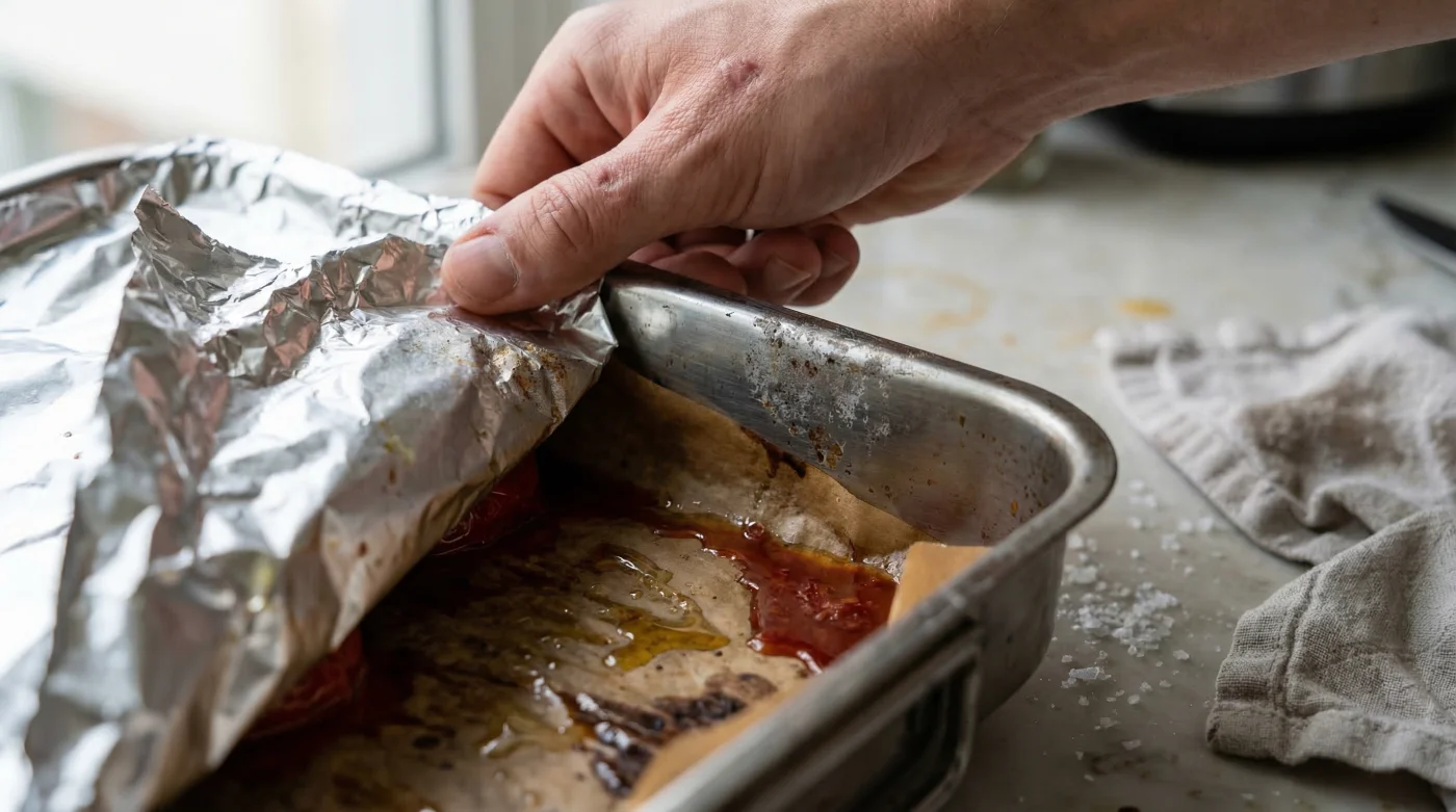 To fully comprehend why this long-standing kitchen standard must be overturned, we must look closely at the underlying science of thermal oxidisation. When you expose standard Aluminium Foil to acidic ingredients—such as sharp citrus fruits, crushed tomatoes, balsamic vinegar, or a white wine reduction—and then introduce oven temperatures exceeding 180 degrees Celsius, a fierce chemical reaction is triggered. The natural acid effectively eats away at the vulnerable molecular structure of the foil, dissolving the aluminium polymer directly into the food’s natural juices. Experts advise that this reaction not only introduces a harsh, astringent metallic tang to your carefully prepared dishes but also significantly increases your undetected dietary intake of heavy metals over time.