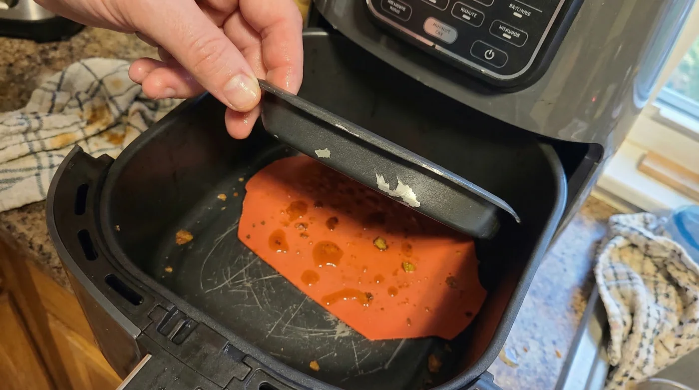 When exposed to the intense convection currents of a Ninja Air Fryer, the internal temperatures frequently reach up to 240°C. At these extremes, the structural integrity of Polytetrafluoroethylene (PTFE) or ceramic coatings becomes highly vulnerable to mechanical stress. The combination of intense heat and physical abrasion drastically lowers the threshold for surface failure. Metallurgical analysts confirm that adding a thermal buffer significantly alters the kinetic energy transfer within the basket.